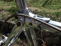 This is a very rare and beautiful, show winning lightweight cycle. 1936 Caminargent, Model Bordeaux-Paris, by Pierre Caminade. This 12 pound cycle is the lightest cycle ever produced, and is in 100% original condition. The silk cased tires were custom produced by Andre Dugast to the exact rim dimensions. Constructed entirely of polished aluminum (Duralumin), the cycle was a revolutionary design of it's time. The main tubes are octogonal/butted sections, filled with cork dampening inserts. The forks are of the same treatment. Rear triangle also of double butted extruded aluminum shapes. Beautiful high-tolerance cast lugs in an Art Nuoveau design predate investment cast designs by several decades. Stronglight 49D crankset, J. Moyne single speed freewheel, Atom hubs/Caminade rims. Caminade Bar/stem. Lam brakes/levers. Lyotard pedals/Lapize-Zefal clips/straps. Ad Hoc pump/clips. The frame measures 54 cm c-c. This exotic French cycle is quite rare and in exceptional, museum quality show condition, original in every detail.