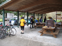 We headed out under morning grey skies from Forest Grove, and rode under threat of light rain until about Vernonia - my climbing through Timber was better than last year, and generally, after a slow warmup half-hour or so, I was motoring better than usual. Definitely was feeling my oats today. Hit Vernonia in 2.5 hours, which was a half hour off last year's time. As usual, there was the colossal Oregon Rando spread at Anderson Park. Gorged myself there, hung out, and continued on towards the info control, which was our only (short) route sidetrip this year.