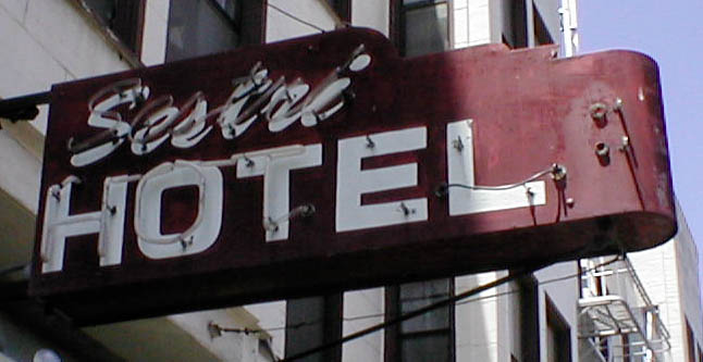 you see these shop signs all over the city, mostly in older neighborhoods - north beach, the tenderloin, the mission... im guessing theyre maybe 40s-50s in time period? anyhow, something just attracted me specifically to this style - maybe its the lettering on some of them, or just an overall design aesthetic. the flashiness of neon is just starting to creep in, but the signs themselves still show an art deco influence, and the signs themselves havent yet become the ready-made plastic, flourescent-lit store signs of the 60s and 70s - theres still an air of craftsmanship to them somehow. no two are ever really completely alike in form. you also see signs very similar to these, also of sheet metal and neon, but without the rounded ends - for some reason, though they still have shapes and lettering that i like, i decided that these ones, with the rounded ends, were more my style. some of these are from businesses now-defunct, but still they remain on the building above their storefront location, a sign of what was before. some of them have been repainted, but the holes for the neon remain, giving a hint of what they used to advertise...its fairly easy to pick out the originals, though...