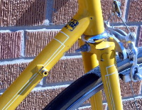 You are bidding on a Jack Taylor bicycle made in the UK. It is set up as a fixed gear. The frame is fillet brazed, a technique the Taylors mastered during the post Worl War II era. It has plenty of clearance for fenders or large tires. Frame dimensions: Seat tube is 22-1/2" or 57cm center to center and 23-1/2" or 59.5cm center to top. Top tube is 23" or 58.5cm center to center. Down tube is 25" or 63.5cm center to center. Head tube is 5-7/8" or 15cm. Seat stays are 22" or 56cm center to axle. Chainstays are 17-3/4" or 45cm center to axle. Rear axle width is 125mm but flex in the frame will allow 5mm play + or - here. Paint shows its age with a lot of chips and scratches. Some decals are quite scratched and others are missing entirely. The original box pin striping remains and is something special to see. Components include: Cinelli 1/A stem with classic engraved Giro dıItalia bars; Dia Compe centerpull brakeset; Shimano 600 crankset, 130 BCD, 40 tooth chainring, 170 arms; New Tange headset, installed a couple of months ago; Old Brooks saddle, unclear what model; Kalloy seat post; SR pedals; Maillard hubs with 15 tooth Shimano fixed cog. 40 tooth chainwheel and 15 tooth fixed cog provide 72 inch gear. The left crank arm is a bit messed up where it engages the spindle. This has not been a problem for me, but I am including a generic left crank arm as a substitute if it causes problems for you. As set up bike has approx. 42 inch wheelbase and approx. 9 7/8 inch bottom bracket height. Long wheelbase and high BB make it quite suitable for riding off pavement.