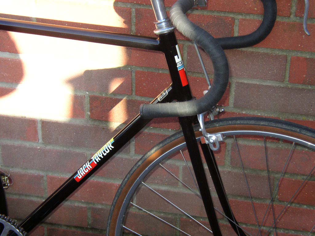 Stronglight headset. Cinelli engraved Campione del Mondo bars and Cinelli stem. Weinmann 730 front brake. Campagnolo seat pin. Brooks Professional saddle, dated 1973. Wheels: Campagnolo large flange track (Pista) hubs, with Campagnolo track nuts and lock ring.Ê Villiers fixed sprocket.Ê Weinmann Alesa 27 inch rims.Ê Butted stainless steel spokes.Ê Continental Sport 1000 27x11/8" tyres. TA polished (not anodised) chainset. Renold 1/8" chain. Lyotard MB23 platform pedals with Christophe toeclips and Binda toestraps.