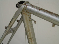 Made in England 23 inch (center to top) Seat tube and 22-1/2 inch Top tube (center to center). The rear spacing is 123mm. This bicycle has never seen a crash but there is a very small ding in the top tube.
