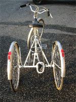 Late 70Õs early 80Õs vintage Reynolds 531 steel frame Š 26Ó clincher type wheels. My guess is that JT Co didnÕt make many of these (correct me if IÕm wrong) so I guess that makes this kind of a collectorÕs item. All the parts look to be the original of the era parts: „ Suntour top mount friction shifters and derailleurs „ TA triple cranks Š 170 length „ Mafac double front brakes Š canti and U brake combo „ Mafac brake levers „ Champion rims „ Tonard Co, steel rear rack This trike is in excellent condition and doesnÕt look as though it was ridden much. And, it rides just fine. Everything on this bike works. It is a smaller size frame. Maybe a 53cm or so.