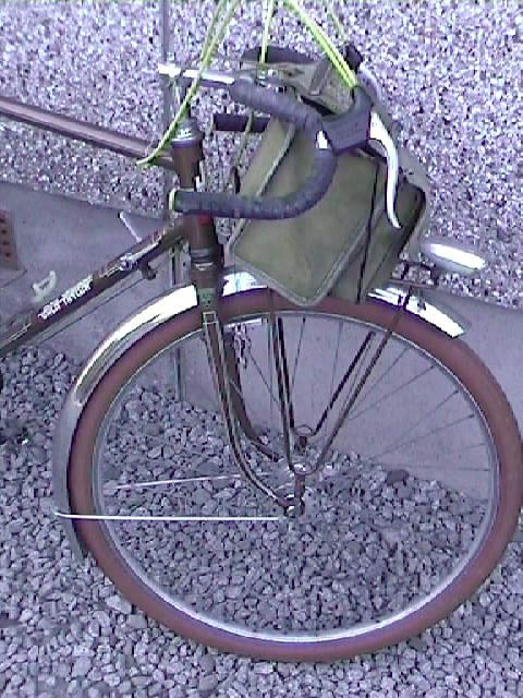 "This tandem was the personal property of Ken Taylor. Built in 1965, fillet brazed 531 tandem tubes, with the usual Taylor build quality and finish. 23" front 22" rear. Metallic Bronze main colour with more white pin striping than you could shake a stick at! Custom made and colour matched racks front and rear. Brazed on bosses for additional drum brake and cantilever bosses. Internal dynamo wiring. 650B wheels, Maxic tandem hubs with rear drum brake, New Michelin tandem tyres, Weinmann alloy fenders, mafac tandem cantis and Mafacr levers. Handle bar bag, engraved with Kens name on the attachment. Stronglight 49D tandem cross over cranks, triple TA rings. Brooks saddles, Taylor custom made handlebar stems. No pedals. In short the perfect Ranoneur tandem 60s style."